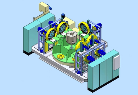 最大300mm立方のワーク迄加工可能な5基の横軸MC機構を備えたDial-Type FMC