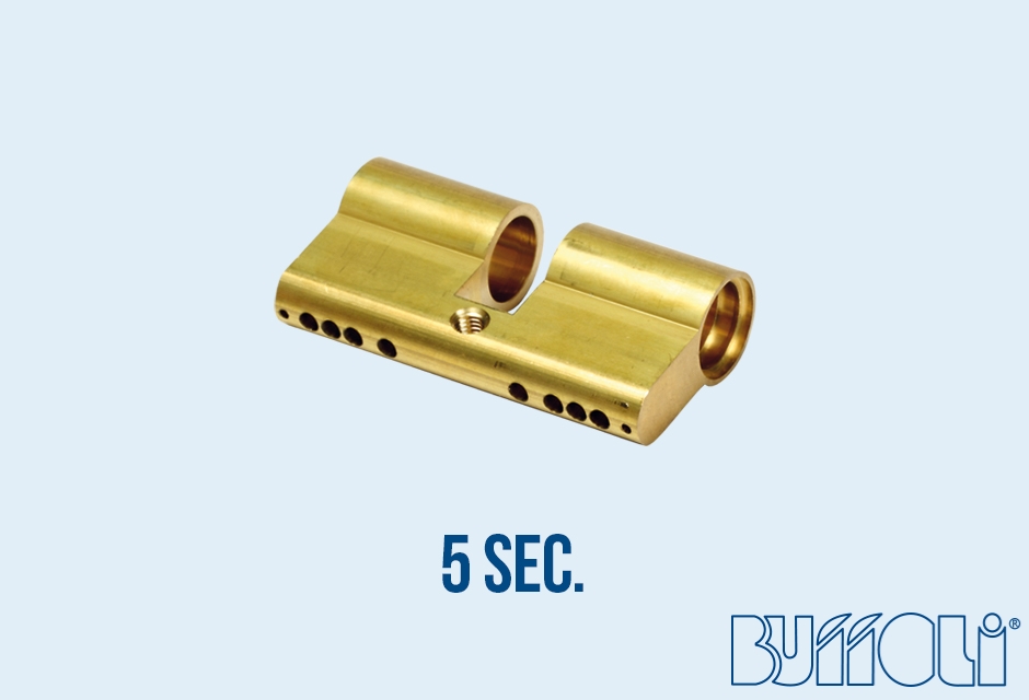鍵のロックボデイー・プラグ加工を異形バー素材から加工するFMC加工機でピンホール加工用の